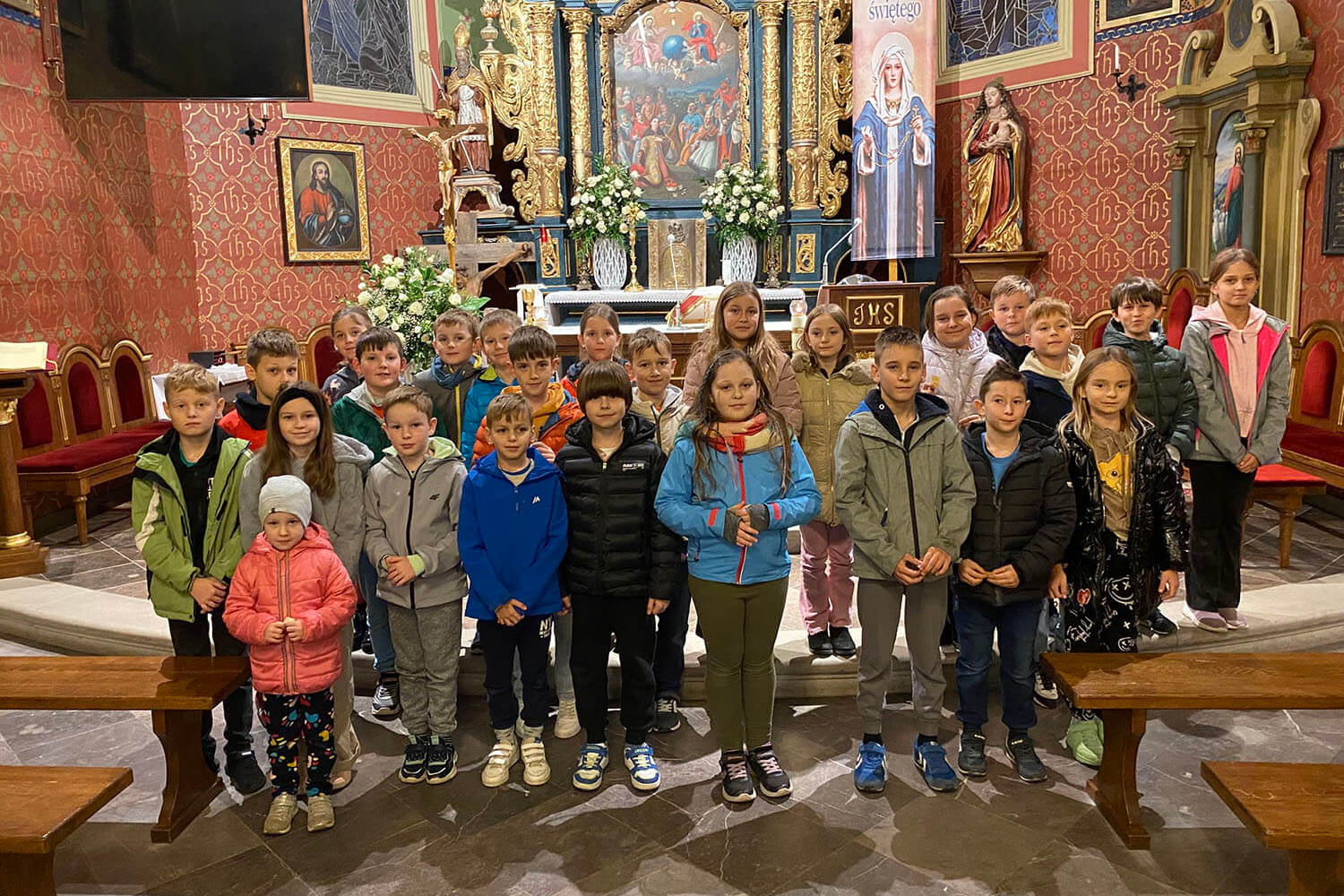 W naszej parafii modlitwa różańcowa sprawowana jest przez cały miesiąc październik codziennie po wieczornej Mszy Świętej. Zachęcamy do uczestnictwa wszystkich, a szczególnie najmłodszych, aby pamięć o Matczynej opiece nie zginęła w naszym narodzie.