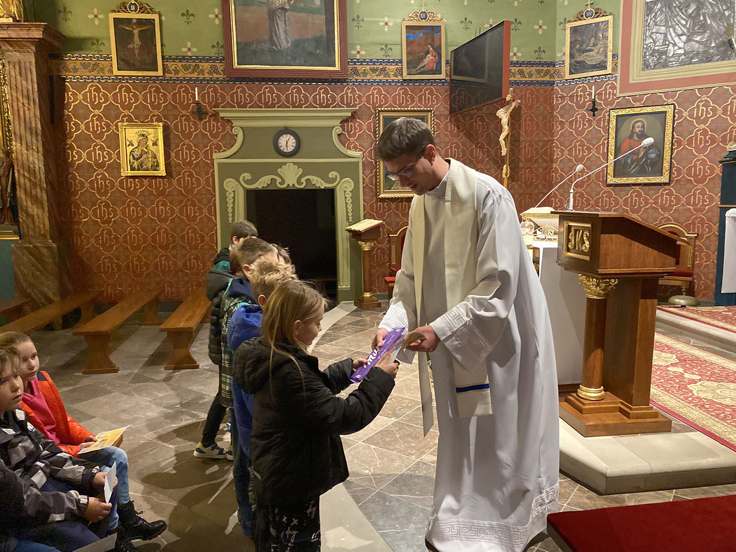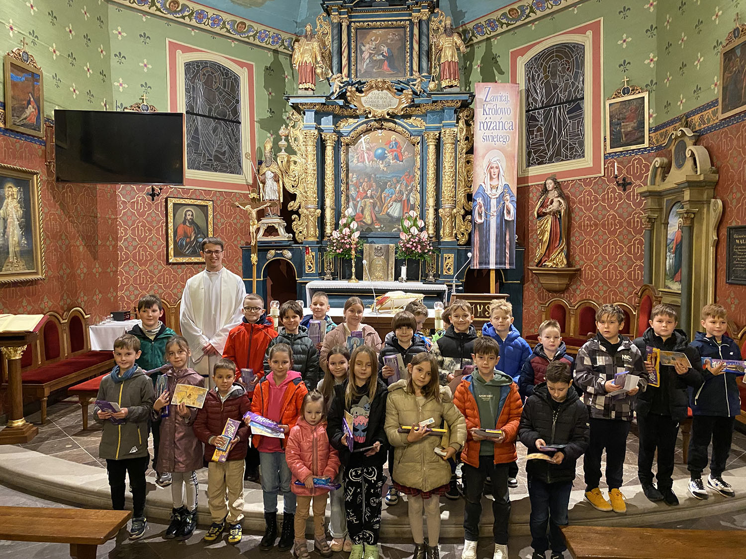 Po wieczornej Mszy Świętej i wspólnej modlitwie różańcowej – 30 października br. – w naszym kościele parafialnym odbyło się uroczyste wręczenie upominków dla dzieci, które sumiennie uczestniczyły w październikowych nabożeństwach różańcowych.