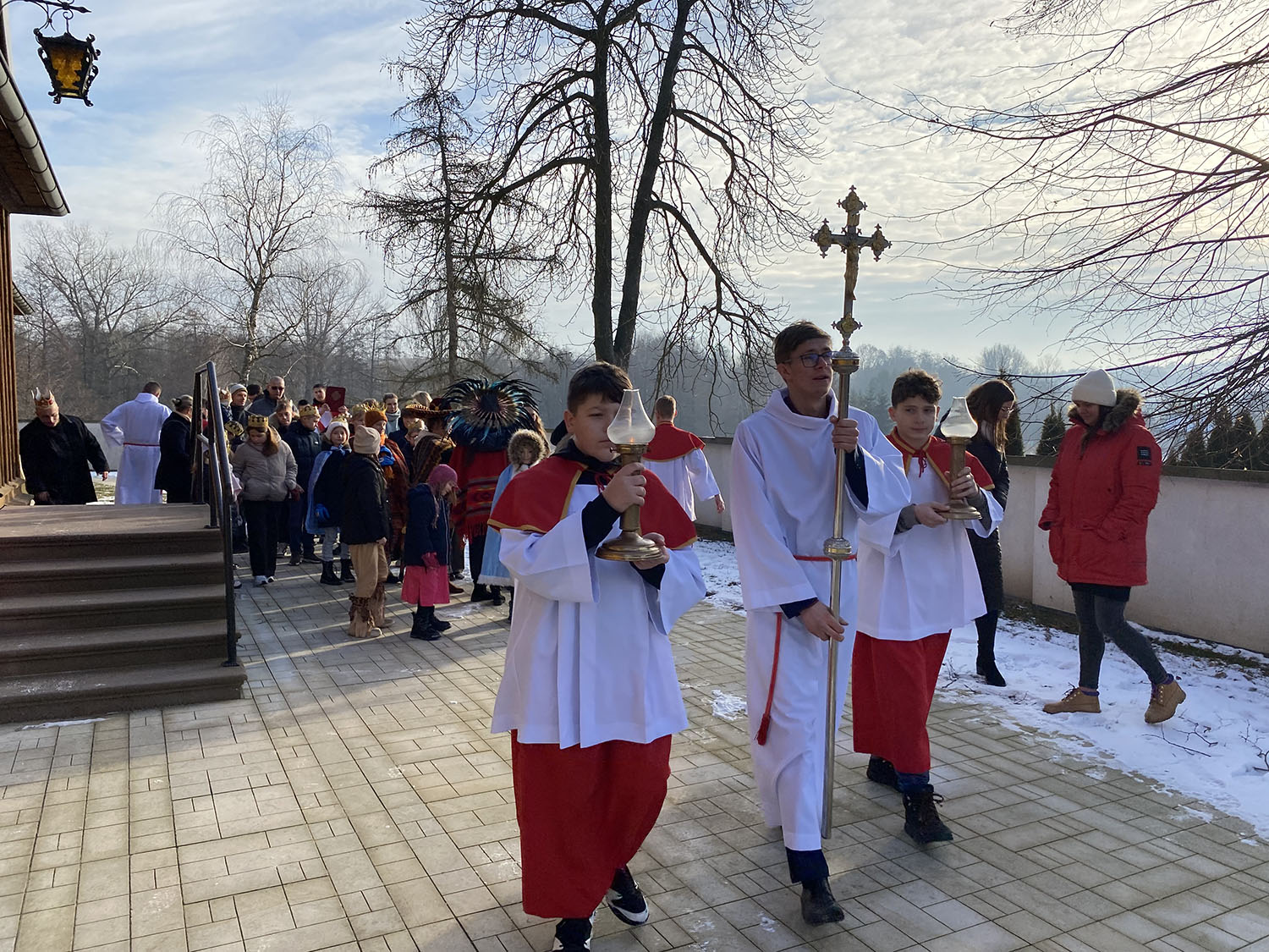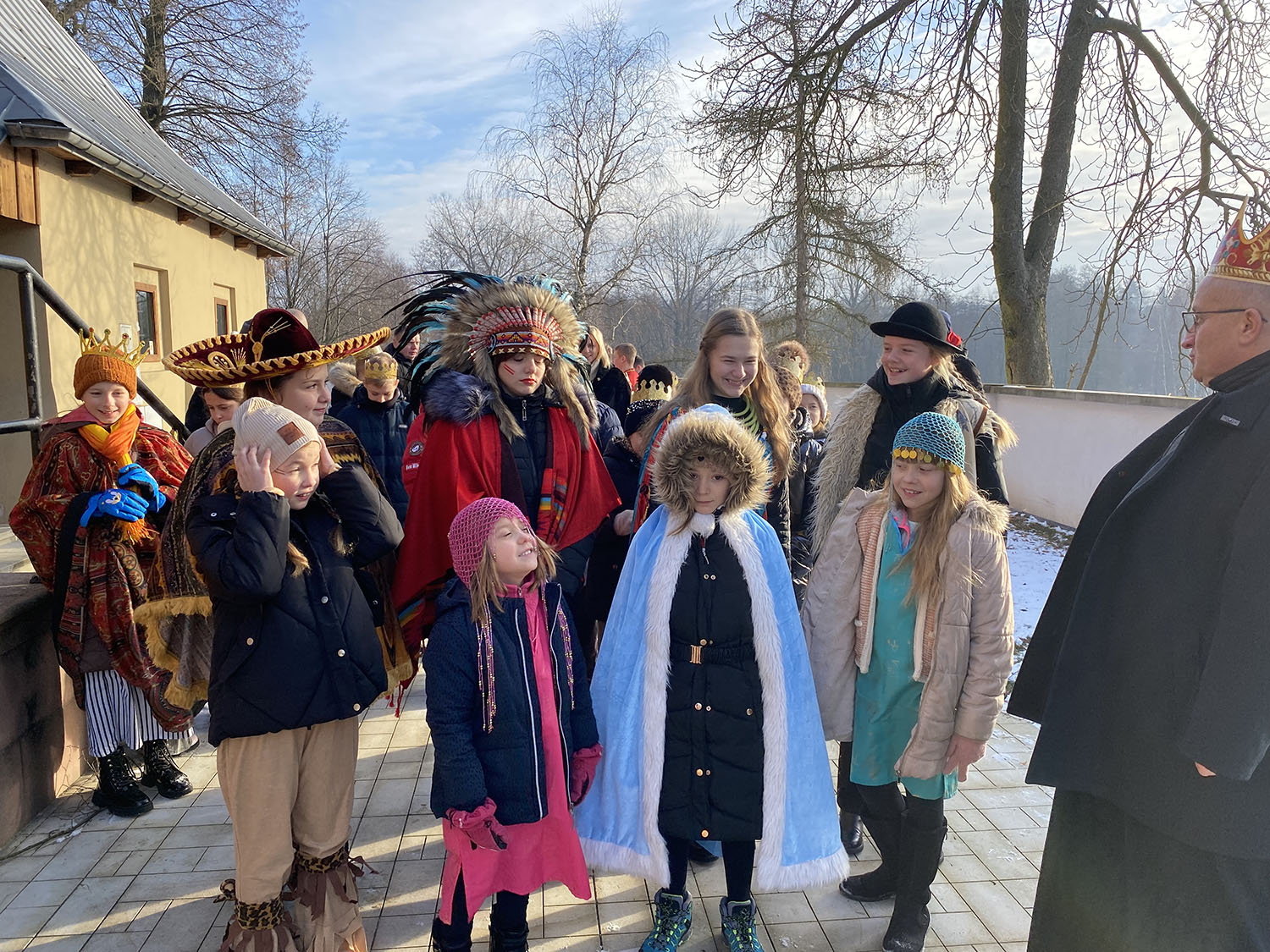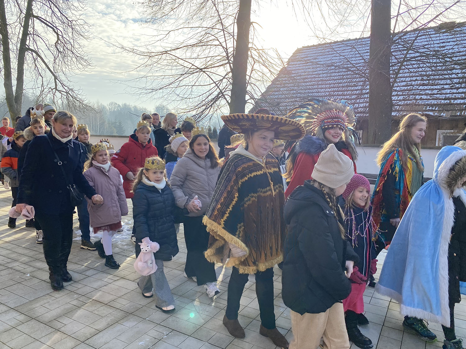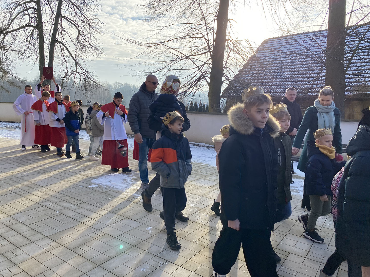 Przed Mszą Świętą o godzinie 1000 odbył się Orszak Trzech Króli. Dzieci przebrały się za swoich rówieśników z różnych krajów świata, ukazując powszechność Kościoła i radość z przyjścia Zbawiciela do wszystkich narodów. Uczestnicy orszaku, idąc w koronach, wspólnie wyruszyli w symbolicznej drodze do Betlejem, dając piękne świadectwo wiary, zaangażowania i wspólnoty. Kolorowe stroje, uśmiechy dzieci oraz radosna atmosfera sprawiły, że wydarzenie to na długo pozostanie w pamięci uczestników.