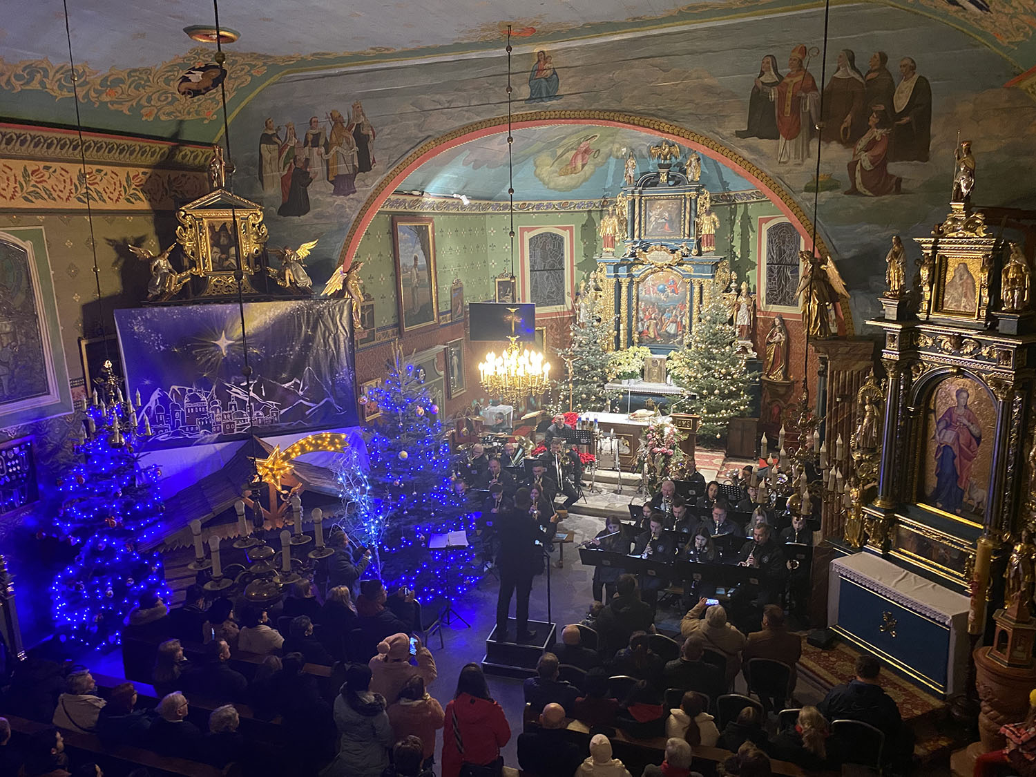 Tego samego dnia, po Mszy Świętej o godzinie 1600, w naszej świątyni odbył się piękny koncert bożonarodzeniowo-noworoczny w wykonaniu Orkiestry TEMPO z Iwanowic. Muzycy zaprezentowali znane i lubiane kolędy oraz inne utwory, wprowadzając zgromadzonych w świąteczny nastrój i pozwalając jeszcze głębiej przeżyć czas Bożego Narodzenia.Koncert był prawdziwą ucztą duchową i muzyczną, a wykonawcy zostali nagrodzeni gorącymi brawami.